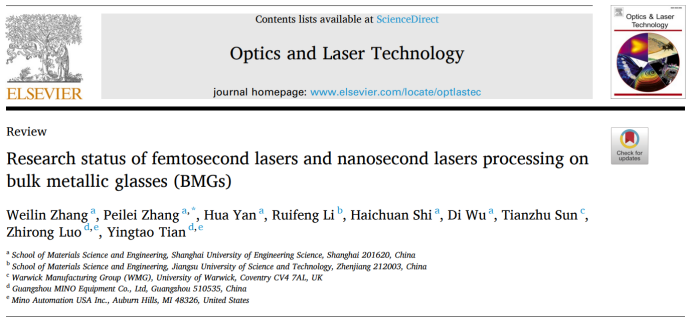 近日,上海工程技術(shù)大學(xué)材料科學(xué)與工程學(xué)院張培磊教授領(lǐng)導(dǎo)的國(guó)際研究團(tuán)隊(duì),在光學(xué)與激光領(lǐng)域著名期刊Optics & Laser Technology發(fā)表題為“Research status of femtosecond lasers and nanosecond lasers processing on bulk metallic glasses (BMGs)”的綜述論文(了解詳情點(diǎn)擊閱讀原文)。