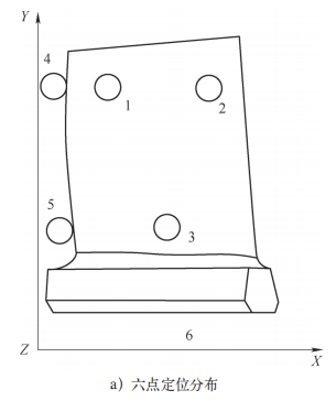 航空發(fā)動機葉片傳統(tǒng)加工工藝中的工藝裝備是使用低熔點合金等相變材料進行填充輔助支撐,即對工件毛坯進行六點定位夾持后,將工件的定位基準(zhǔn)通過低熔點合金澆注成為一個澆注塊,對工件進行輔助支撐,并且把復(fù)雜的點定位轉(zhuǎn)換成規(guī)則的面定位,進而進行待加工部位的精密加工(見圖6)。這種工藝方法存在明顯的缺陷:定位基準(zhǔn)轉(zhuǎn)換導(dǎo)致定位精度下降;生產(chǎn)準(zhǔn)備復(fù)雜、低熔點合金的澆注和融化也帶來了工件表面的殘留和清理問題,同時澆注和融化的工況也比較惡劣[30]。為了解決上述工藝缺陷,常用的方法是引入一種多點支撐結(jié)構(gòu)與相變材料相結(jié)合[31],支撐結(jié)構(gòu)上端與工件接觸進行定位,下端浸入低熔點合金腔室中,基于低熔點合金的相變特性實現(xiàn)柔性輔助支撐。雖然引入支撐結(jié)構(gòu)能夠避免低熔點合金接觸葉片產(chǎn)生的表面缺陷,但是受到相變材料的性能限制,相變?nèi)嵝怨ぱb無法同時滿足高剛度和高響應(yīng)速度兩大需求,難以應(yīng)用于高效率自動化生產(chǎn)當(dāng)中。