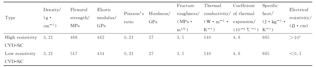 不同電阻率的CVD-SiC性能參數(shù)對(duì)比