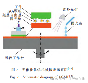 2023年,H.Lee從摩擦學角度對CMP、MASCMP和PCMP進行了比較研究。實驗結(jié)果表明,PCMP具有更高的摩擦力和MRR,這可能是由TiO2顆粒光催化氧化導致的。