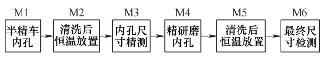 為避免機(jī)床精度對(duì)加工精度的影響,并且能依靠現(xiàn)有設(shè)備實(shí)現(xiàn)輪體加工,同時(shí)嚴(yán)格保證內(nèi)孔尺寸和形狀精度要求,經(jīng)過(guò)多次工藝摸索驗(yàn)證,確定使用研磨工藝來(lái)實(shí)現(xiàn)內(nèi)孔高精度要求。輪體內(nèi)孔加工工序如圖2所示。同時(shí),為減輕研磨操作強(qiáng)度和提高效率,研磨前將孔余量精準(zhǔn)控制在0.01~0.02mm,圓柱度優(yōu)于8μm,表面粗糙度值Ra<1.6μm。這樣就需對(duì)輪體的車削和研磨技術(shù)進(jìn)行深入的研究。
